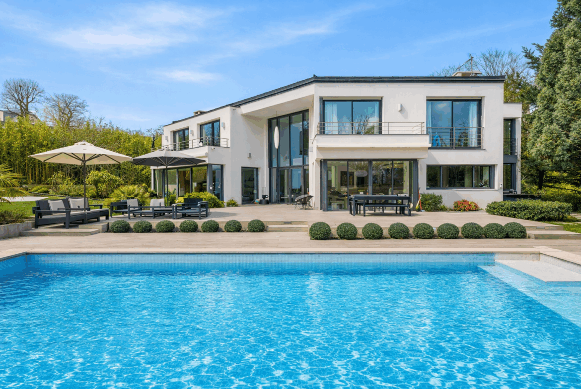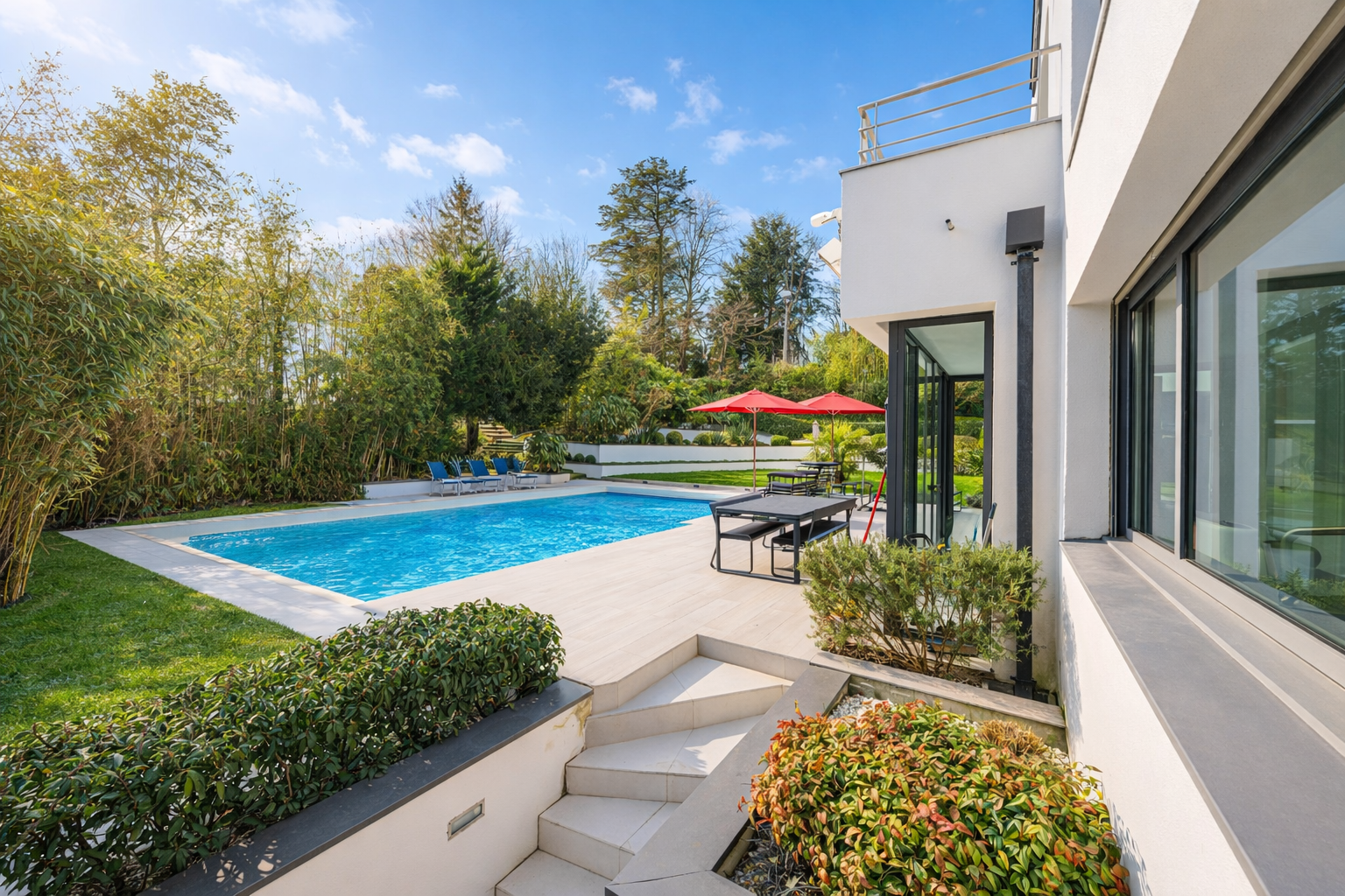 For sale – Co-Exclusivity – Exceptional property in Garches – Contemporary house – Surface 437 M2 – Garden 2200 M2 – swimming pool – garage – ready to live in – guest house 48 M2 – Beautiful address