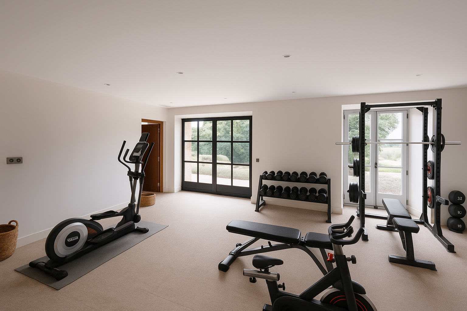 Bien-être : salle de sport avec hammam et salle d’eau.