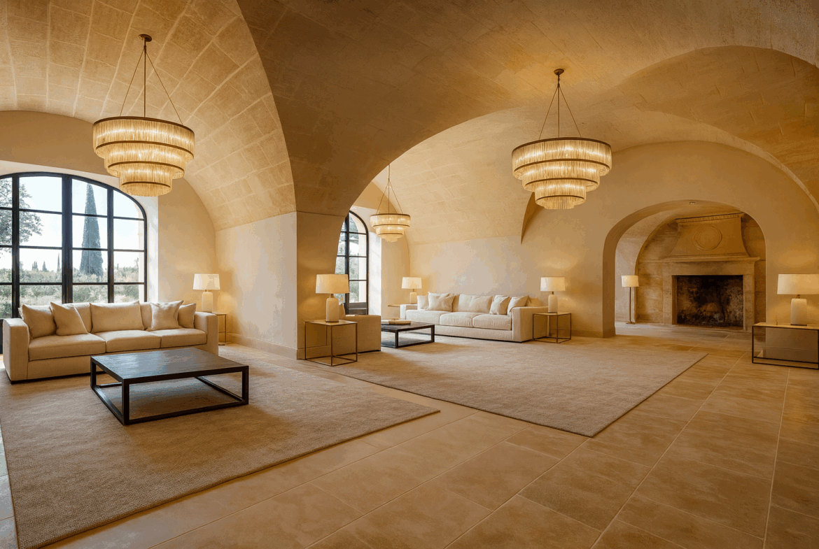 Le plan d’agencement a été conçu pour offrir une grande flexibilité d’usage : résidence privée, demeure familiale, activité para-hôtelière, lieu culturel ou encore domaine événementiel.