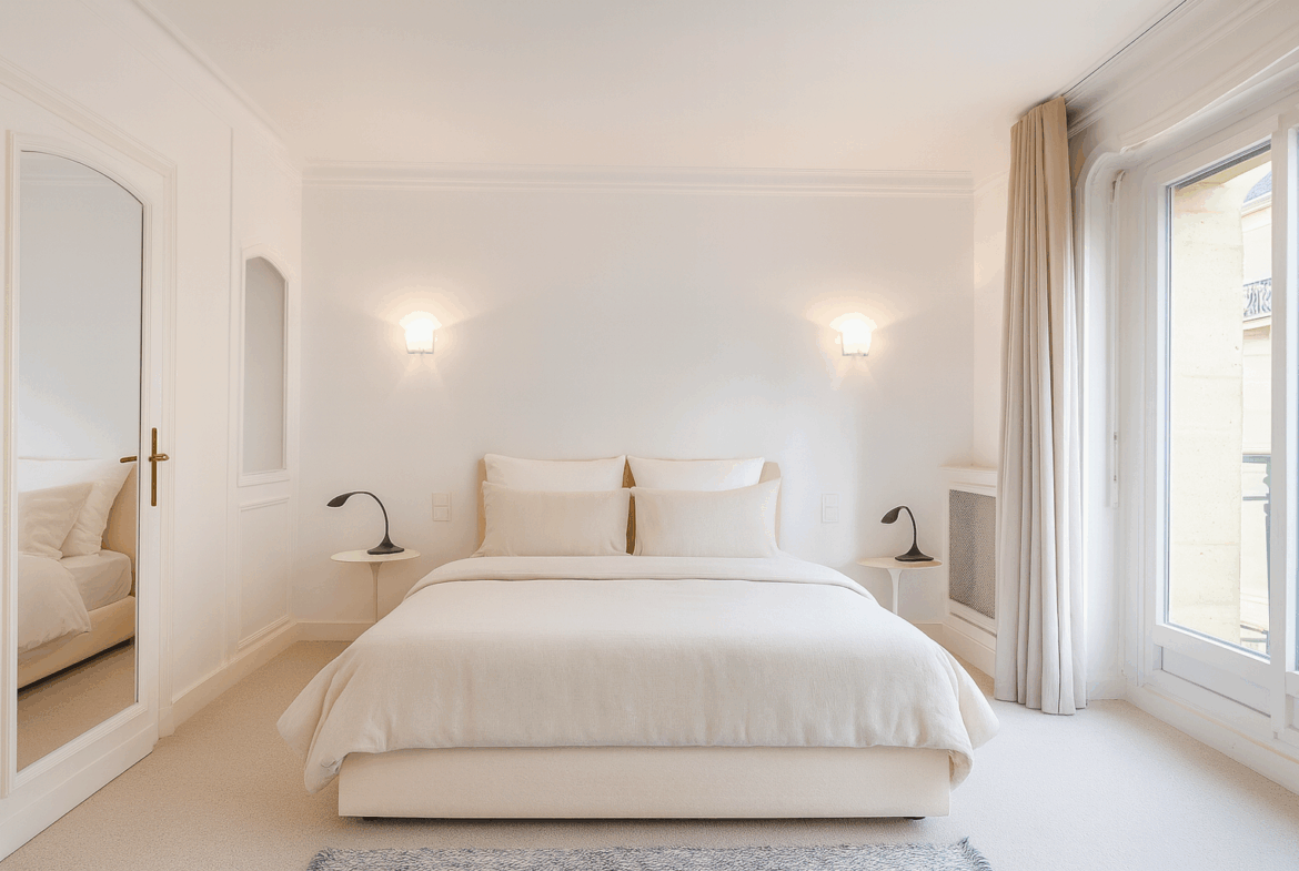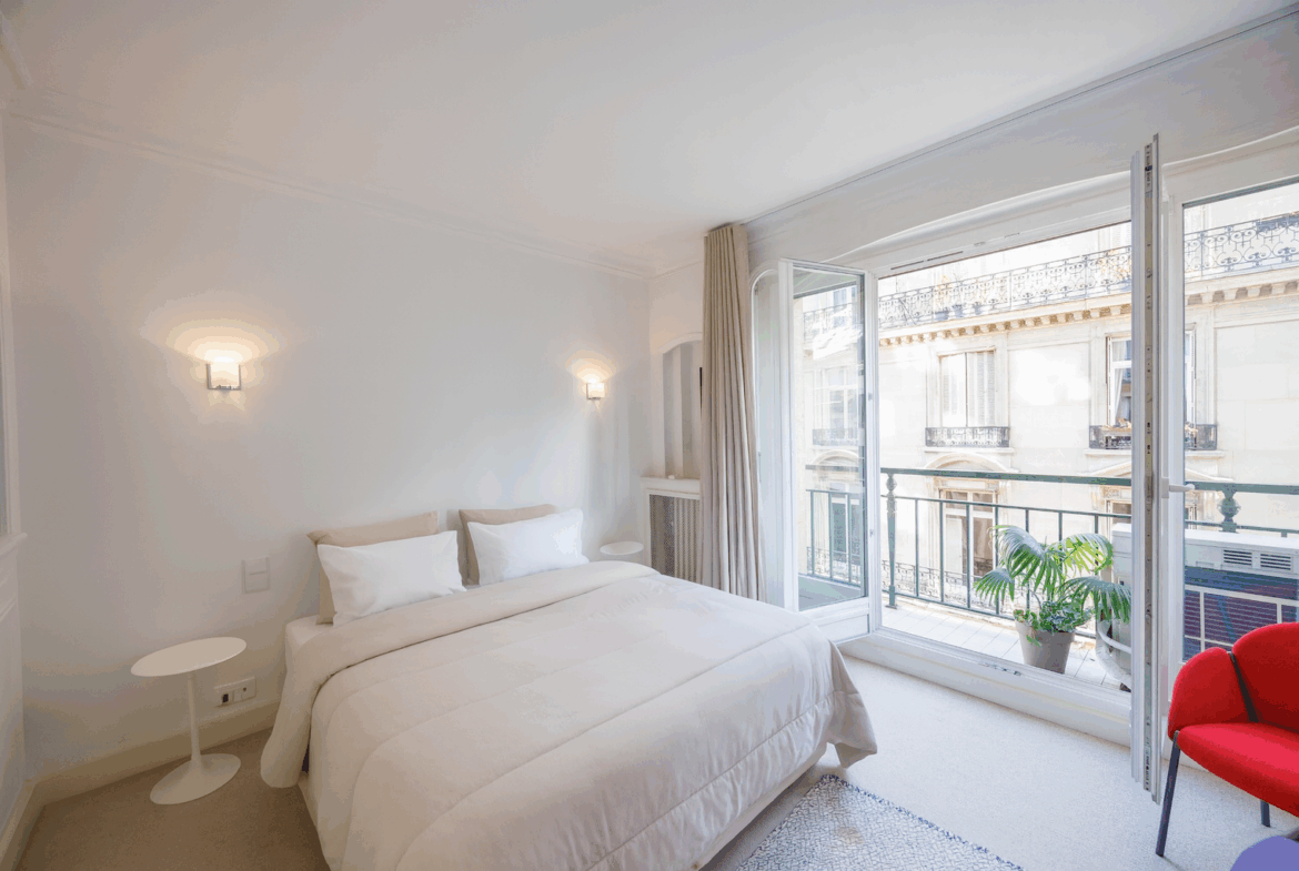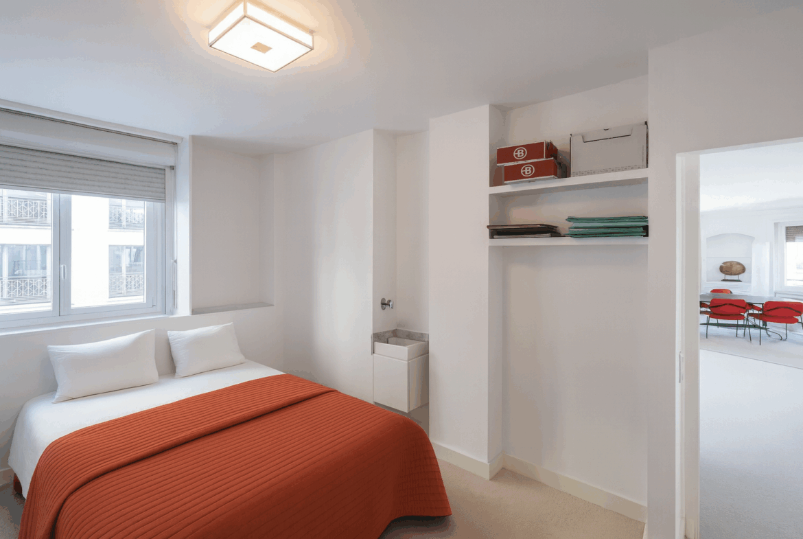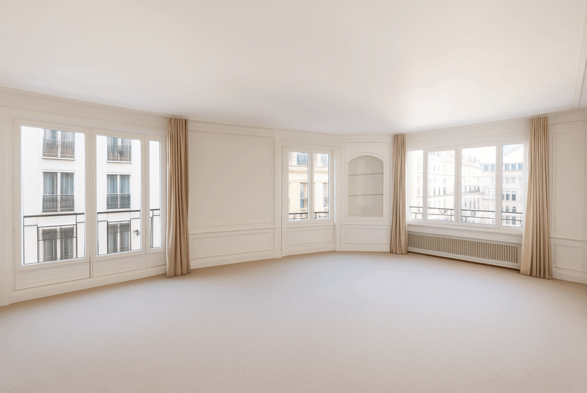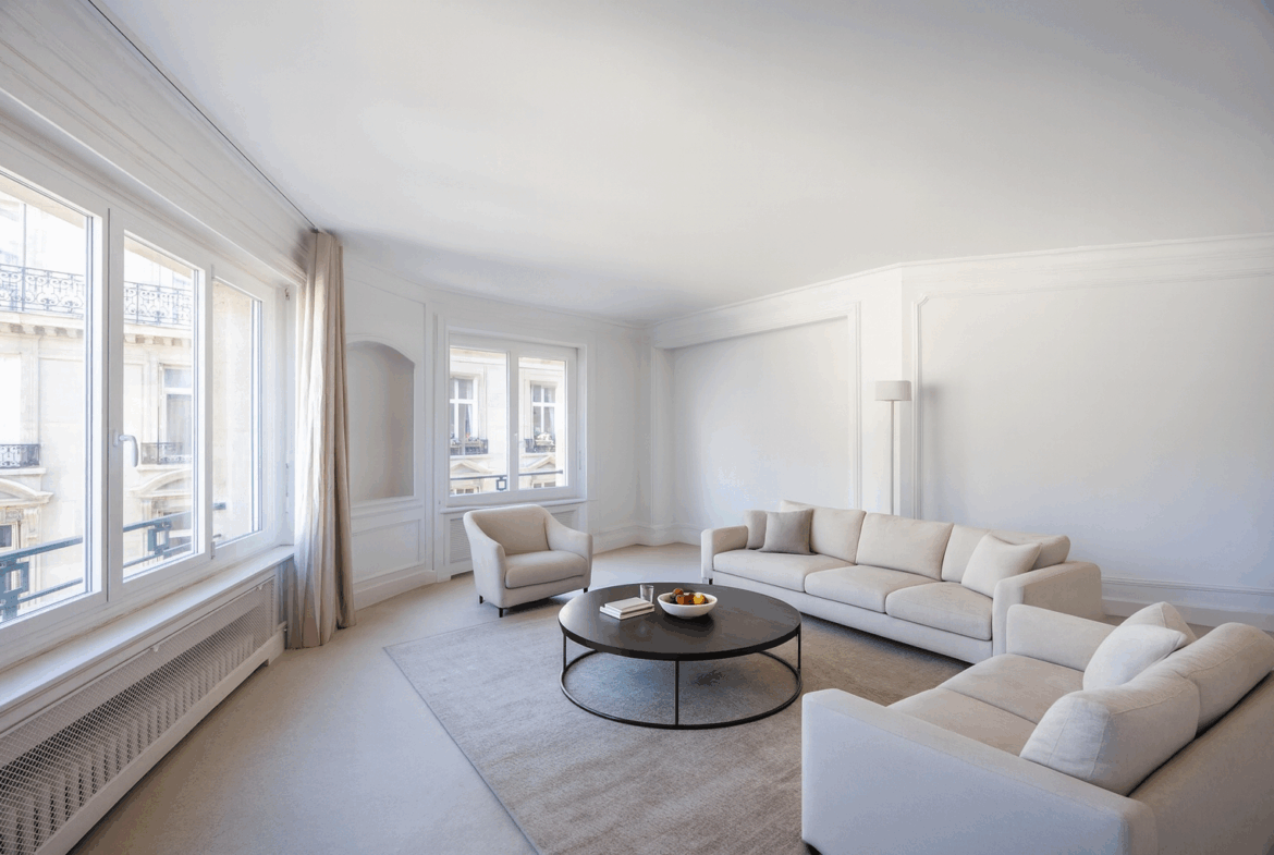 Nicolson Realty présente en exclusivité un élégant appartement situé dans le 8ᵉ arrondissement de Paris, à proximité immédiate de l’avenue des Champs-Élysées et du métro George V, au début de la rue de Bassano.