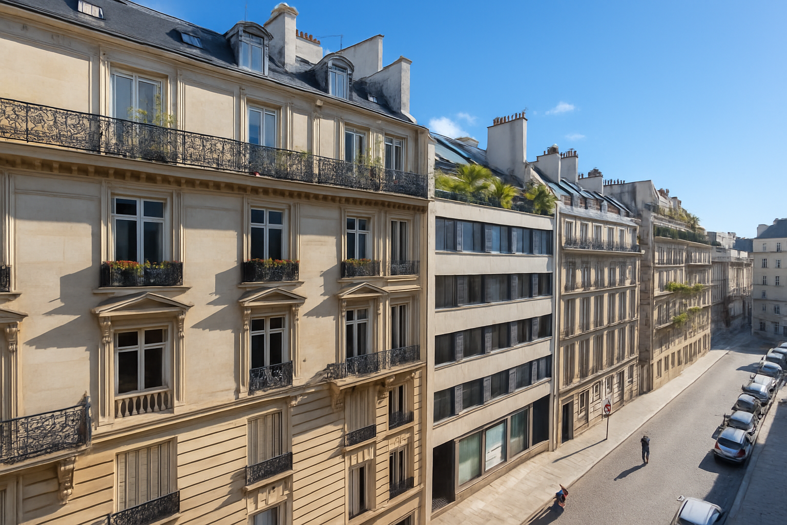 Extérieurs : 2 balcons filants, 4,4 m² → valorisation retenue 35 % du prix/m² ≈ +1,54 m² équivalent (soit 86,5 m² pondérés)