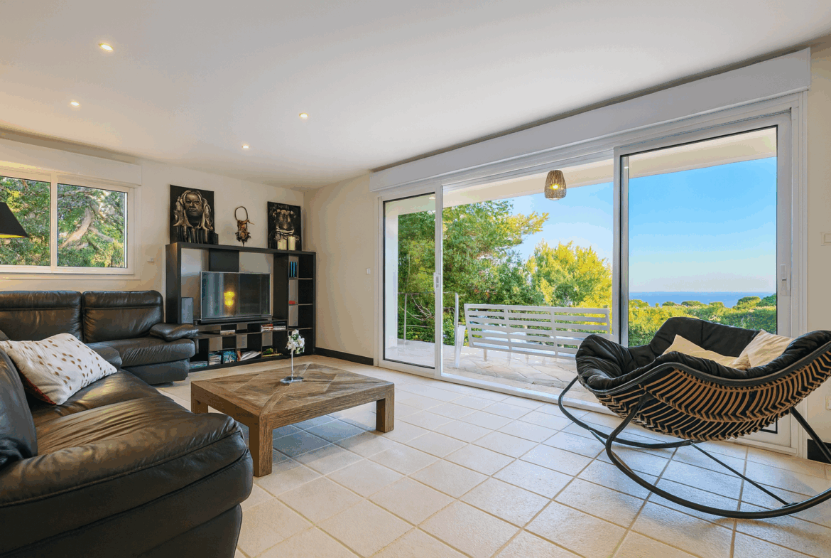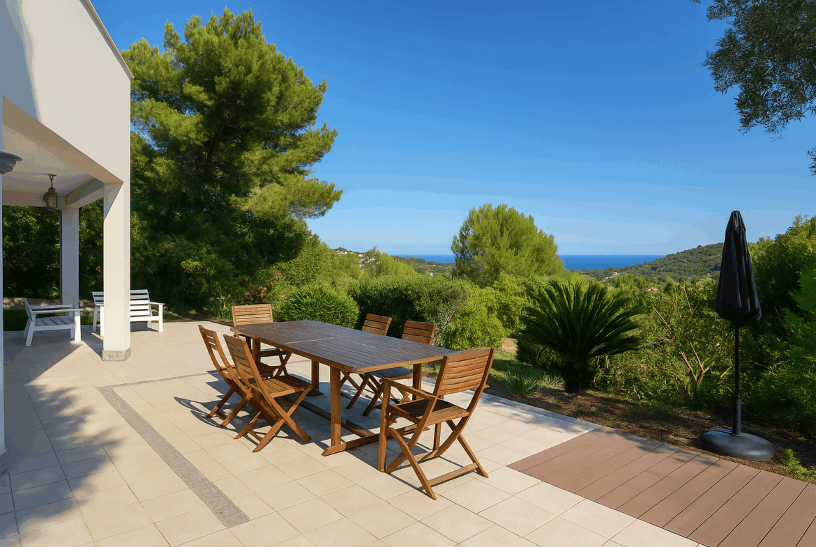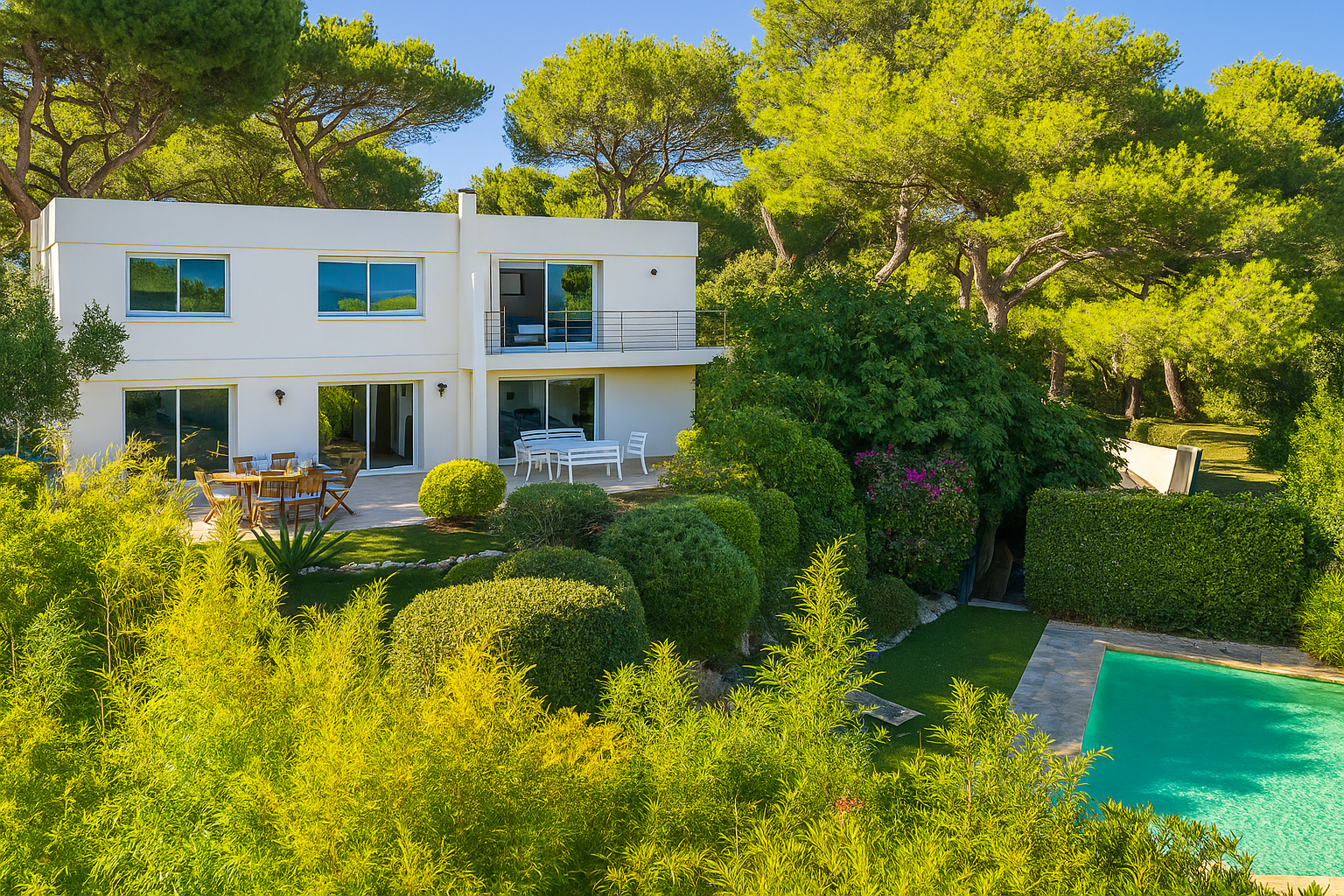 Orientée vers la mer, la propriété se compose d’une villa principale d’environ 200 m² ainsi que d’une maison d’amis d’environ 60 m², offrant une configuration idéale pour accueillir famille et invités en toute indépendance.