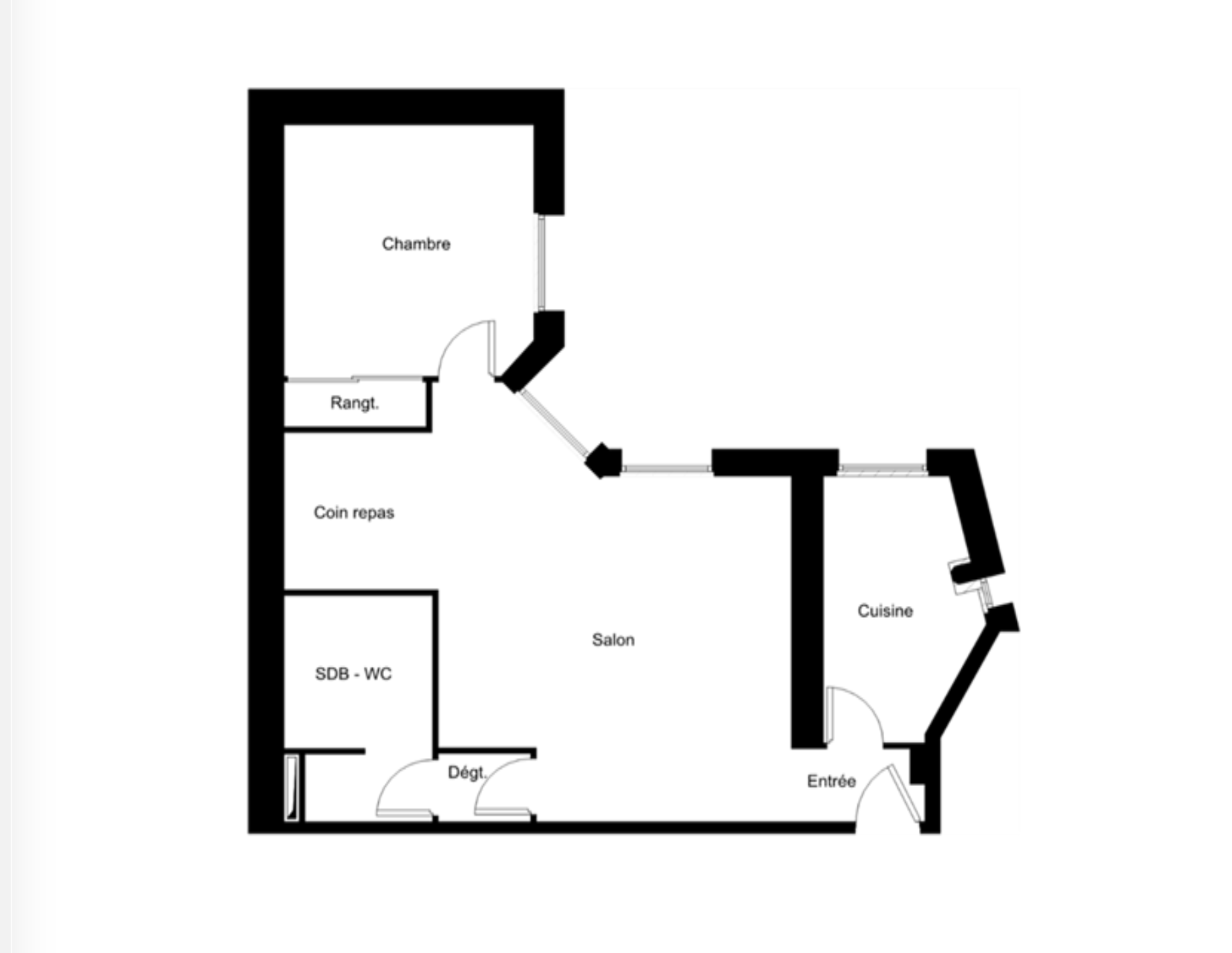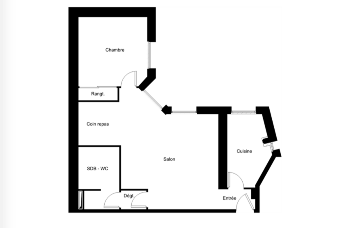 Le séjour, réparti en deux espaces distincts, me permet d’imaginer à la fois un espace séjour et un coin salle à manger. La chambre, bien séparée, offre un vrai confort au quotidien. La cuisine indépendante, la salle de bains et les toilettes séparées complètent un agencement fonctionnel, facile à vivre.
