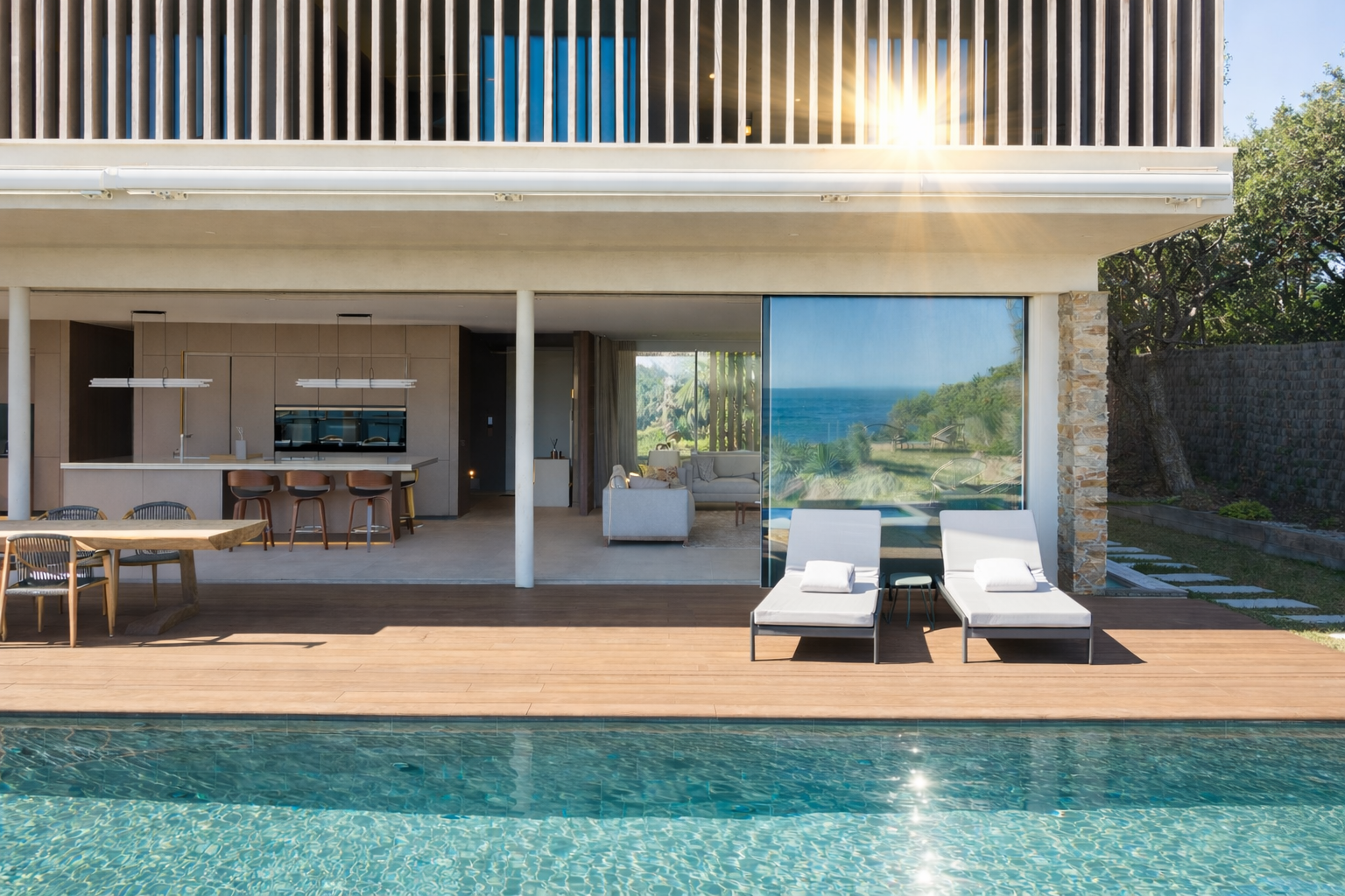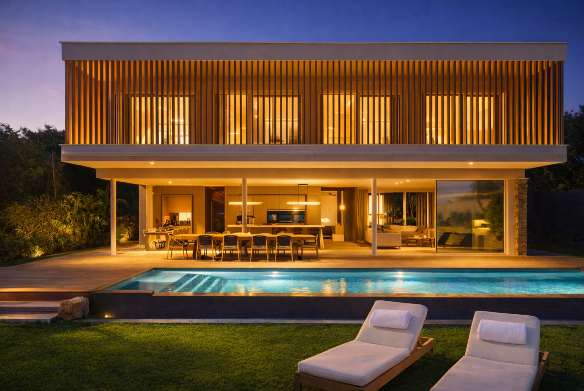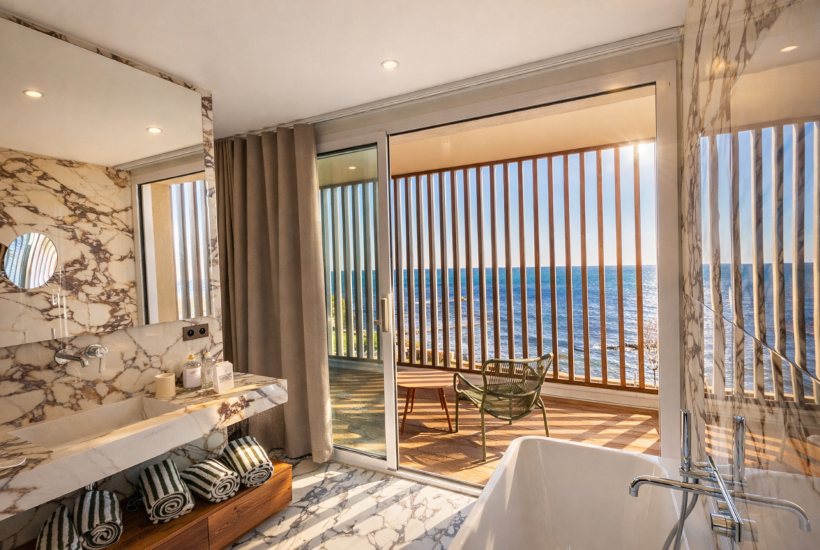 A vendre : Propriété pieds dans l’eau aux portes de Sainte Maxime – Villa contemporaine construite en 2024 – 340 M2 – 4 chambres – Accès privé à la plage – Environnement sécurisé.