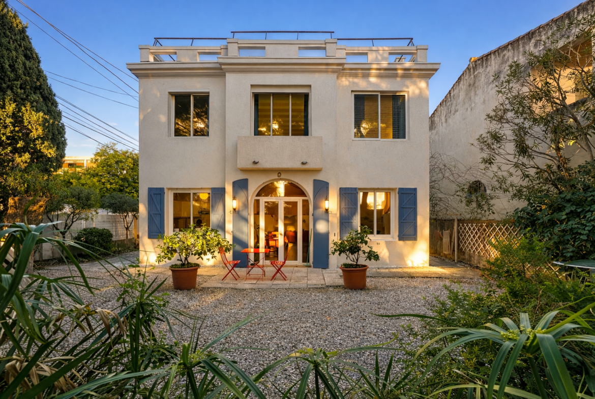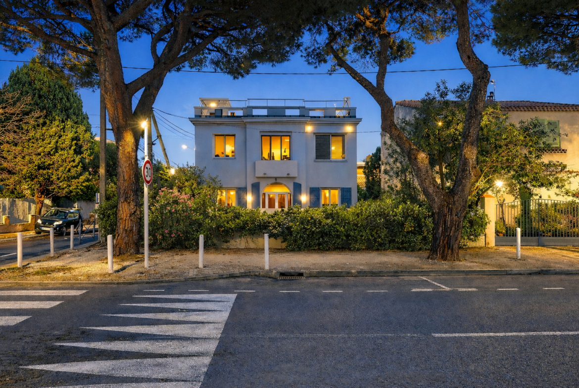 Nicolson Realty présente une demeure remarquable, édifiée à l’apogée de la période Art Déco, idéalement située à Saint-Cyr-sur-Mer, à quelques pas de la plage et du village côtier.