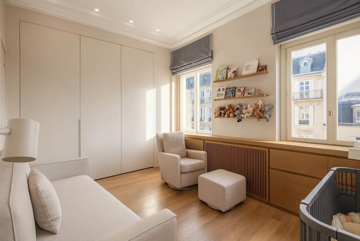 Le retrait naturel de l’immeuble garantit un calme préservé, malgré l’emplacement au cœur de l’un des quartiers les plus prestigieux de Paris.
