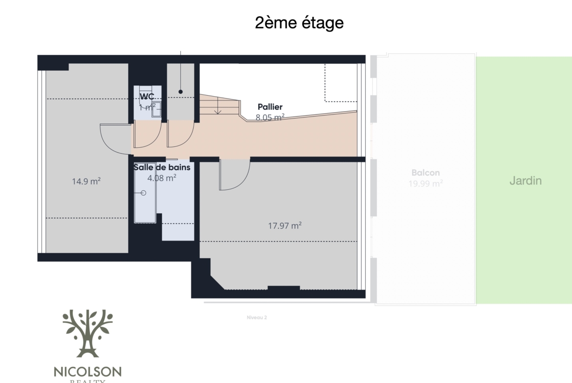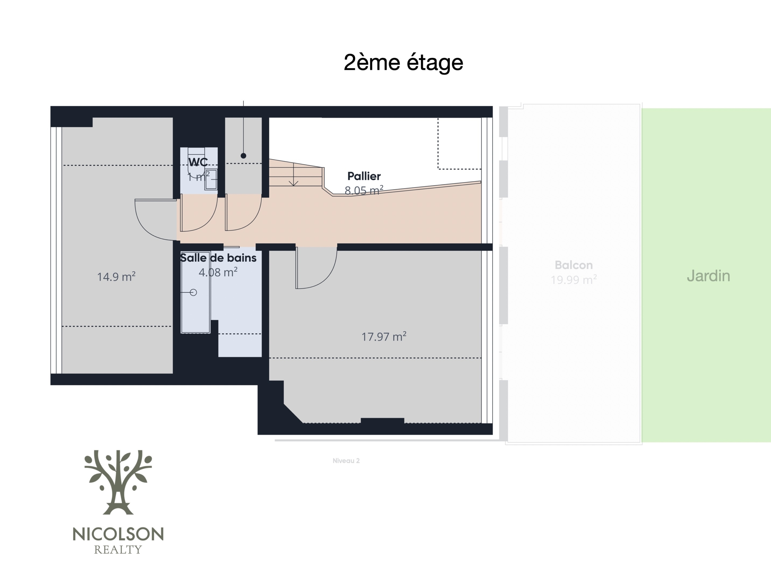 Au deuxième étage, deux chambres se partagent une salle de bains et des toilettes séparés.